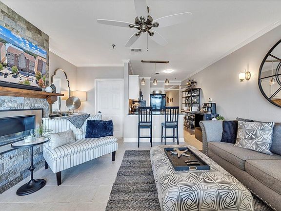 Custom stone faced fireplaceConditioned four-season sunroomWaterfront condoBio-ethanol fuelGranite countertopsTile backsplashCustom walk-in tiled showers