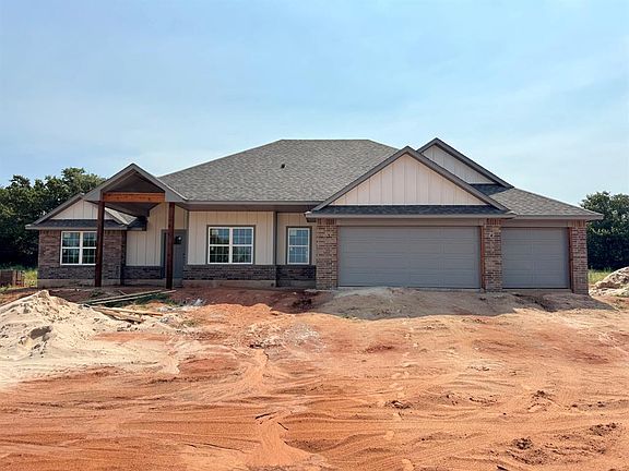*$2,000 in closing costs if buyer uses builder's preferred lender!* This magnificent home on 1.25 acre (m/l) from RT Quality Homes will blow you away! Enjoy the gorgeous ceramic wood look flooring throughout the open living room and kitchen areas. The study area could be a great additional 4th bedroom or perfect for your home office. The details of the fireplace in the living room are beautiful! Kitchen boasts stainless steel appliances, granite countertops, an island with room for seating, and plenty of cabinet storage! The rooms are spacious and all have carpet throughout. The master suite features a bathroom with 2 separate vanities, granite countertops, walk-in shower, and a walk-in closet! Spacious laundry room! The backyard features a relaxing covered patio and a huge backyard! Enjoy this 1.25 acre (m/l) to play, entertain, or just enjoy a cup of coffee to the Oklahoma sunrise! CONCRETE ROAD & SHOPS ARE ALLOWED UP TO 30'X50' ! **PLANS, SPECIFICATIONS, DETAILS AND PRICING SUBJECT TO CHANGE WITHOUT NOTICE**