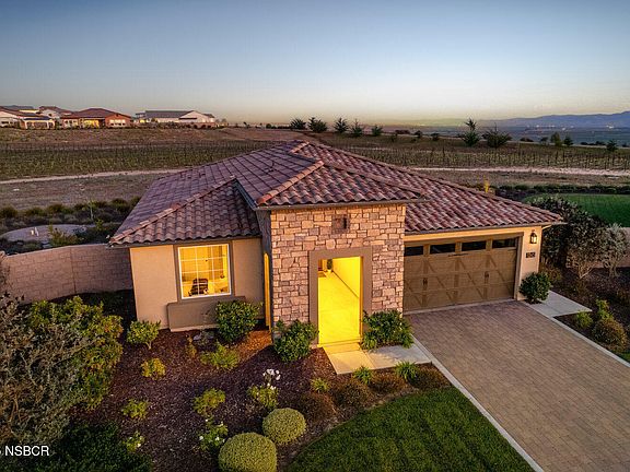 Step into unparalleled elegance with this single-level Solvang model, perched on a premium almost 11,000sf vineyard and mountain view lot in Trilogy at Monarch Dunes. Nestled at the end of a quiet cul-de-sac, this 2-bedroom plus office, 2-bathroom SOLAR and SMART home exudes the effortless sophistication of a model home, with tile floors, neutral palettes, & abundant natural light. The award-winning floor plan centers around a spacious great room with soaring ceilings, seamlessly connecting to a stunning kitchen featuring a custom waterfall-edge island, quartz countertops, top-tier GE Profile appliances, reverse osmosis system plumbed into fridge & spigot, five-burner gas stove, and stained maple soft-close cabinetry with pull-out drawers. A large pantry & oversized laundry room with desk and ample storage add both function and style. The primary suite is a serene retreat, offering breathtaking vineyard and mountain views, high ceilings, a spa-like bath with dual sinks, quartz countertops, walk-in shower with bench and decorative tile, & an expansive walk-in closet. The guest wing includes a corner bedroom with two large windows, a bath with soaking tub/shower combo, and an office , perfect for work, study or even a 3rd bedroom! Designed for modern living, this smart home features sophisticated automation: lighting with dimmers, thermostat, solar, water heater, appliances, remote entry, and voice activation via Alexa and Siri, along with Ring, MyQ, Rachio irrigation, interne t booster for outdoor WIFI coverage, smart HQ, and programmable outdoor lighting/fountain. Step outside to your private resort: four distinct patios for alfresco dining, sun lounging, yoga, or morning reading, surrounded by lush, low-maintenance landscaping with beautiful fountain setting a peaceful tone with rose and veggie gardens, five fruit trees, and panoramic vineyard and mountain vistas. Stone accents, paver driveway, and southern exposure complete the idyllic setting. Live the Trilogy lifestyle with championship golf, fine dining, luxury spa, state-of-the-art fitness, and endless social opportunities. Relax in the expansive backyard and enjoy sweeping views of wildflower meadows and even NASA and SpaceX launches from Vandenberg. Golf course community with all the amenities right at your fingertips & just five miles from Oso Flaco Lake State Park dunes and beaches. Exceptional design, luxury, and technology converge to create a home that's more than a residenceit's a lifestyle.