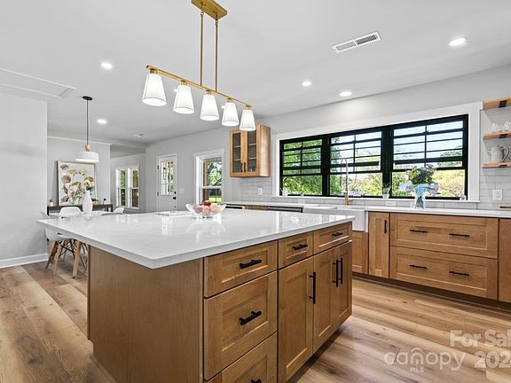 Beautiful and peaceful homestead with trees wrapping around offering privacy. The porch, so pleasant, wraps around, too! There seems always to be a breeze. The home is full of light airiness. All new in the last 6 months: electrical, plumbing, HVAC, sub-floors, floor coverings, drywall, paint, kitchen, baths, roof & more. The kitchen features luxury cabinets with upgrades including a drawer microwave and Samsung Bespoke white glass appliances plus gorgeous quartz countertops. The large island has extra storage and can seat up to five. There's even a cute little pantry for your overflow. Convenient access to the huge, new deck and the laundry room from the kitchen. A fireplace wall separates the kitchen and dining area and offers retreat space. And that guest bath! Must see. The owner's suite has a large walk-in closet, large shower and double vanity. Five minutes from Rte 73 dining and shopping in Denver, 10 min. to Lake Norman, 12 to Mt. Island Lake, 20 to Charlotte Douglas airport.