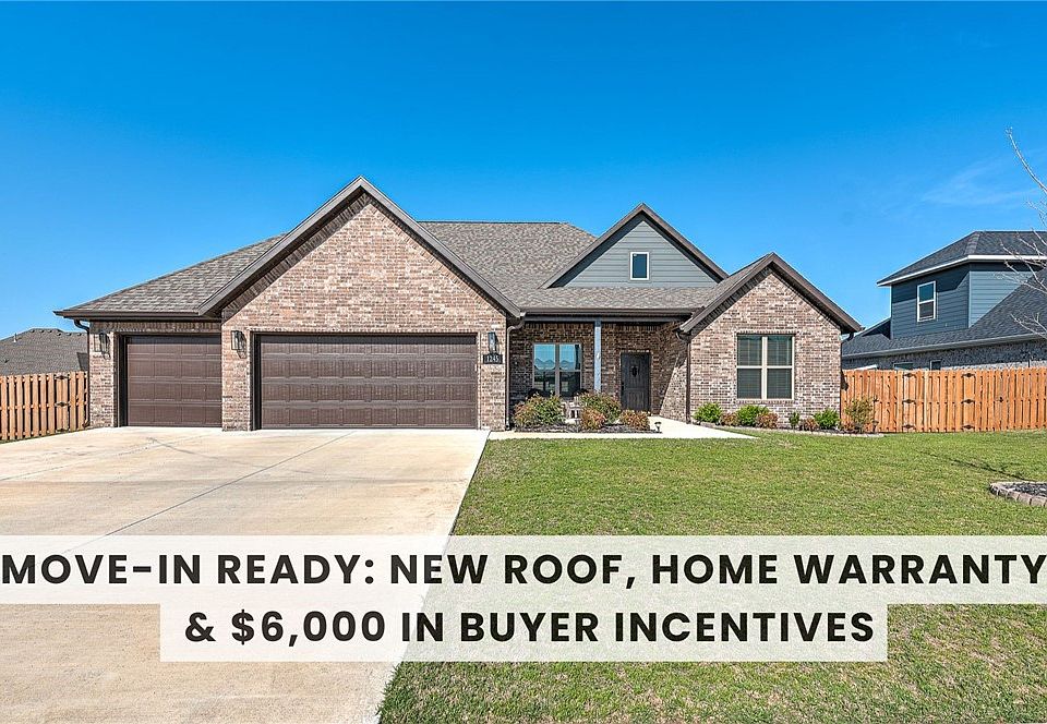 Situated on a corner lot in Tontitown’s South Pointe subdivision, this thoughtfully designed home offers an inviting open concept layout, highlighted by a bright and airy living room with vaulted ceilings. The spacious bedrooms provide plenty of room to relax, while the expansive attic storage ensures everything has its place. A BRAND NEW roof adds peace of mind and lasting value. Modern upgrades include surround sound wiring and vibrant Govee lighting on the front exterior. The 3-car garage offers ample space for vehicles, hobbies, and storage. Nestled in a welcoming neighborhood with a community pool and playground, this home perfectly balances comfort, convenience, and lifestyle. The home’s location is unbeatable, offering quick access to Arvest Ballpark, I-49, dining, hospitals, and more.