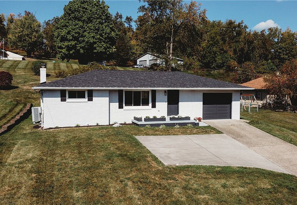 Nestled along the perfect country setting with endless views, 1245 Rostraver Road has something to offer everyone. Commuters will appreciate the convenient access to I-70, Route 51, and the PA Turnpike, and a complete renovation has this house ready for your moving truck! The fresh exterior features a new roof and new paint with a modern spin. The main floor boasts an open floor plan living area with custom hardwood floors, including a fully remodeled kitchen with a large island and all new appliances, dining and living room. The floor plan also offers the convenience of two bedrooms and one full bath on the main floor. The lower level of the home includes a primary ensuite, an additional bedroom/office, half bathroom, and living space perfect for everyone. A new furnace and air conditioning system promises year-round comfort inside the home, while the front and back yards offer outside living potential as well.