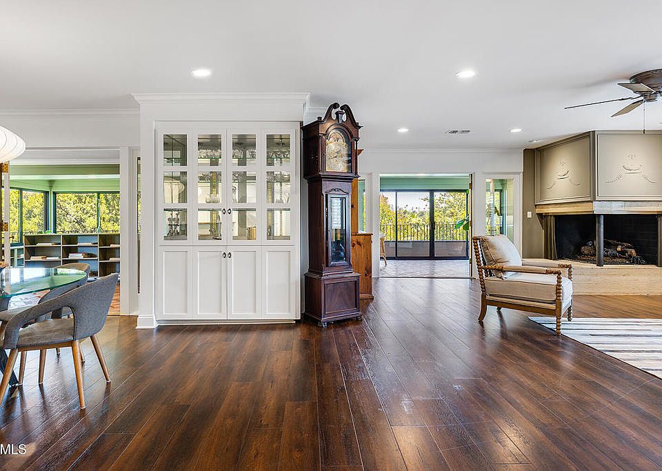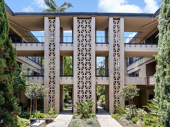 Back on the market at no fault of the property; buyer did not perform. This mid-century penthouse offers all of the benefits and none of the headaches of single family residence living, on a spacious single level. Located in the desirable Orange Grove Terrace complex, boasting classic mid-century architectural features including breeze block walls and clean lines, this corner unit is special. With three bedrooms (one a large primary suite), three baths, and 3625 SF of living space, including patio sunroom offering open air tree top and mountain views, THIS is lifestyle. With no shared walls, this uber private, quiet condo enjoys a gated formal entry with custom tile work and midcentury built-in planters. The carved wood front door opens to a generous open concept entry, flowing into a light filled living and dining rooms. A decorative cornered raised travertine fireplace is a highlight - coupled with two sets of with French doors leading into the sunroom, it makes for superlative entertaining. Conveniently, the kitchen and pantry are located adjacent to sunroom and dining room as well. While the east facing public rooms are conducive to hosting, the private spaces of the home are well placed on the west side of the unit. The sunny family room is nicely appointed with built-in bookshelves and a secret storage compartment hidden in the tongue and groove wall paneling. Two bedrooms, both nicely sized with en suite baths (one accessible to the hallway for guest use) are equally desirable as bedrooms or a home office space. The third, primary bedroom is incomparable with its grand proportions, private balcony and enviable layout, including bath with marble countertop double vanity and generous dressing. With a sparkling private community pool, handsome landscaping and two covered parking spaces, one might never feel the need to leave this peaceful home. However, this location in southwest Pasadena offers some of the most beautiful architecture and breathtaking vistas anywhere in southern California. Convenient to Old Town Pasadena, downtown LA and everything beyond, this is a unique opportunity to live in town, with elegance and privacy.