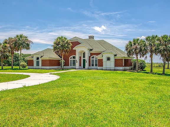 Surrounded by 300 acres of conservation land, this beautiful 10-acre property is a true escape. Custom-built, the 3-bedroom, 2-bath multi-story home has a circular drive and sweeping views of the Levy Lake prairie. No detail was overlooked while designing the home, from the tall vaulted ceilings to the crown molding that runs throughout. Large windows bring the outside in and are the center attraction when walking into the circular living room, which also comes with a cozy double-sided fireplace. The chef's kitchen showcases a similarly beautiful view, as well as a large island, walk-in pantry, and a wine bar. The home features a first-floor master bedroom complete with a luxury bathroom offering a large, jetted tub, walk-in shower, double-vanities, and make-up station. Upstairs is a large bedroom with a spacious closet and balcony that allows you to have the best view of the sunsets on the property. Two additional rooms in the home could serve as bedrooms if desired, bringing the potential bedroom count up to 5! The oversized garage is built with a large, air-conditioned room that you can use as a work area or for additional storage. Behind the home is a stunning backyard space featuring a large in-ground pool with a wide deck, an amazing space for hosting friends and taking in sunsets over the prairie. Located just a short drive from Gainesville, this property is a stunning example of how to blend privacy with convenience.