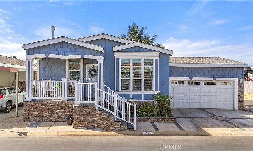Relax in the spacious living room, where the abundance of windows offers a perfect connection to the outdoors. Whether hosting guests or enjoying a quiet evening at home, this space provides the perfect setting for any occasion. Step outside and enjoy the large, covered patio, a perfect spot for alfresco dining, lounging, or simply soaking in the surroundings. The home is also equipped with an attached finished 2-car garage that includes a built-in electrical EV charger, making it ideal for eco-conscious buyers. Additional storage space ensures you have plenty of room for all your belongings, with extra space to organize and declutter. This thoughtfully designed mobile home combines style, comfort, and functionality, making it a perfect place to call home.