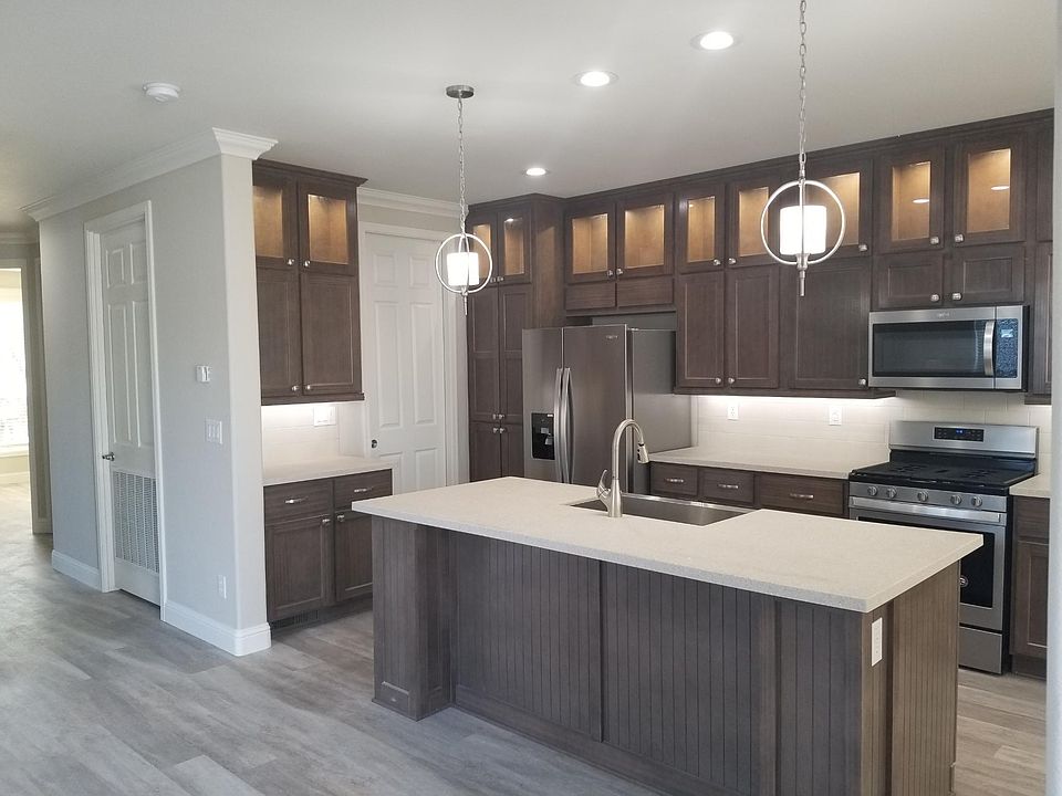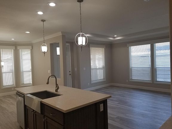 This Brand New Home rests in the Gated 55+ Community of Cienega Valley Estates on a very favorable lot backing up to the creek. This home features custom kitchen cabinetry all the way up to the 9' flat ceilings. LED lighting in upper glass panel cabinets, with LED lighting underneath cabinets to accent the LG Solid surface countertops. Large kitchen Island features Stainless Steel Farm sink, and pull down sprayer faucet. The kitchen offers Stainless Steel Appliances by Whirlpool including 25 Cubic Feet side by side refrigerator with water and ice, 5-Burner Range with overhead microwave. The living room is accented with a coffered ceiling and crown moulding. The home has crown moulding throughout and 5 1/4" baseboards to compliment the luxury vinyl plank flooring by Shaw throughout. The master bedroom boasts a large walk-in closet and a full tiled shower with tiled bench seat. The grand 15' wide driveway offers ample space for parking your SUV and full sized pick up. Space rent is $1,329 per month. Schedule your private showing today!