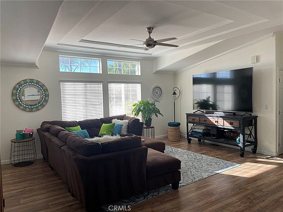 and boasts an UNCOMMONLY EXTRA LARGE CULDESAC CORNER LOT. YARD has A RESORT LIKE VIBE--MANY GORGEOUS MATURE PALM TREES. Sellers recently had the exterior & interior professionally painted. WINNER!!! ((Ready for your family to move)) The interior high volume ceilings and intricate designs will amaze you! As you walk up to this home you be welcomed by the exquisitely wide impressive staircase entrance. The kitchen features a walk-in pantry, recessed sensor lites, nicely tiled counters, attractive cabinets, an island & separate eating area. Recessed lighting. Living quarters will impress you to no end. Formal dining room, a spacious living room with high coffered ceilings. Also a fireplace which adds extra warmth for the holidays!!  Dual paned windows, recessed lighting, ceiling fans. As an added upgrade, sellers had  warm natural color/pergo floors installed throughout this lovely home. Master suite has a bonus/office room with upgraded built in book shelving. Open the french doors from the office area and you are welcomed into the outdoor oasis! Nice patio area, a luxurious spacious yard with vinyl fencing & a tall side block wall for privacy. Added feature is gazebo area. Grounds have a sprinkler system and BBQ hook-ups. Exterior was upgraded with rain gutters. The master suite bathroom offers dual sinks, & a cozy roman tub, & large linen closet for your towels/storage. Master has a walk-in closet with a skylight! Second bedroom has a newly installed door leading into a second full bathroom with tub and shower. Bathroom is accessible from the hallway for guests. Other amenities included are in-door laundry room with sensor lites, washer/dryer hook up for full size appliances. Upgraded newer water heater. Home has central heating and A/C. Exterior has Upgraded all-weather stairs on carport side. Guest parking is just a few feet from this unit; perfect for guests. The covered carport offers room for THREE cars, an stylish shed with a A/C wall unit. The community offers an inground pool, spa, basketball and tennis court. Also a billiard room, card/library RV parking, & banquet room. Also a gym/workout room. Come tour this amazing home today! Priced to Sell. Sellers motivated:)