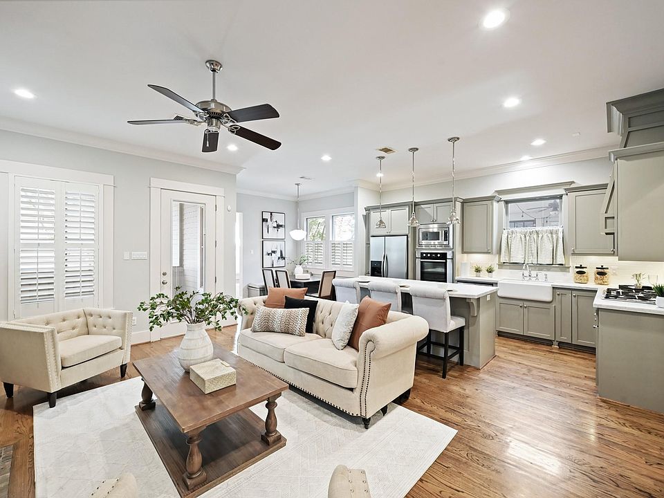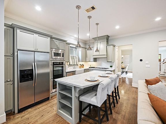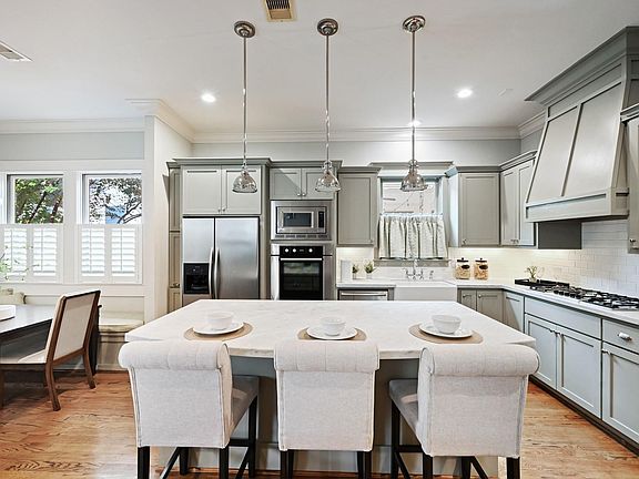 Discover timeless elegance & modern comfort in this beautiful Craftsman-style home, perfectly situated in one of the most desirable parts of the Heights. The kitchen is a true showstopper featuring classic marble countertops, silver hardware, Bosch appliances & a butler’s pantry. Charming breakfast room with built-in bench seating & well-appointed mudroom complete this inviting space, blending family friendly functionality with timeless style. Enjoy relaxing on the adorable front porch, perfect for morning coffee or evening chats with neighbors. The craftsmanship and classic design continue throughout every room creating a warm, welcoming atmosphere. A huge bonus is the spacious garage apartment, offering central AC, a full bath with a walk-in shower, and endless possibilities, perfect for guests, a home office, or rental income. Located just steps from the Heights Hike & Bike Trail, this home combines charm, comfort, and convenience in one of Houston’s most sought-after neighborhoods.