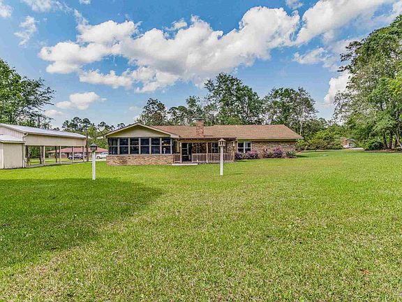Welcome to your spacious retreat nestled on a serene acre of land! This charming 4-bedroom, 2-bathroom home offers a perfect blend of comfort and functionality, with ample space for both indoor and outdoor living. As you approach, a grand canopy of trees welcomes you, providing shade and privacy to the property. Step inside, and you're greeted by a spacious living area and sunroom with large windows that flood the space with natural light, creating the perfect space for gatherings with friends and family. The large kitchen has plenty of counter space (granite), lots of cabinets for storage, and a convenient breakfast bar, making it a delight for both casual meals and entertaining guests. The master suite offers a peaceful retreat with its generous size, a private ensuite bathroom, and a walk-in closet, providing ample storage space. Three additional bedrooms provide flexibility for guests, a home office, hobbies, or whatever your heart desires. Outside, the sprawling backyard with a covered deck is perfect for outdoor enjoyment. Imagine hosting barbecues on the expansive patio, or simply relaxing in the shade of mature trees while taking in the tranquil surroundings. Plus, the covered RV parking provides convenient storage for all your outdoor adventure gear. This home is conveniently located to shops, restaurants, and recreational opportunities, this is the ideal place to call home for those seeking a perfect balance of comfort, convenience, and tranquility. Don't miss your chance to make this dream retreat yours!