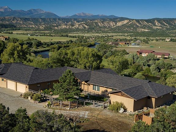 3,892 SF newly renovated single level home with 350 feet of Arkansas River frontage located less than 10 minutes from downtown Salida, Colorado. This is a rare find in Chaffee County and some of the best Arkansas River frontage in the valley with no highway noise and level, easily accessible river frontage. Home features an expansive great room with vaulted ceilings, natural wood beams, and a wall of windows looking over the river with the Sawatch Mountain Range as a backdrop. Main living area includes 3 large bedrooms, 2 full bathrooms, modern kitchen, pantry, and laundry room. Radiant hot water baseboard heat, woodstove, and heat/cool mini-splits plus hot water in-floor heat in the bathrooms provide multiple options for year round comfort. The attached studio suite with a full bath, office and bonus room provides a second living space for relaxing, entertaining, or a private area for visiting guests. Outdoor living space includes large decks front and rear, enclosed hot tub area, and an observation deck overlooking the river and the massive 360 degree mountain views. The attached garage/shop is massive with a footprint of 40 ft x 68 ft (2,270 SF) including room for 3 to 4 cars in the main section, separate office/workshop, and two large bays with 12 feet doors and loft storage. Plenty of room for your RV, toys, or workshop. The lower river frontage, easily accessible by stairs or gentle path, is literally larger than a football field and the lush green grass and trees is reminiscent of a manicured park. Unobstructed views of the Arkansas River, The Sawatch and Sangre de Cristo Mountains from everywhere on the property, inside and out. 350 feet of calm water creates a private oasis for relaxing, fishing, and easy put in/take out for rafts and kayaks. Year round access on paved roads. Low utilities courtesy of the grid-tied photovoltaic solar installed in 2020 (owned). 40 acre BLM parcel directly across the road for dog walking, etc.