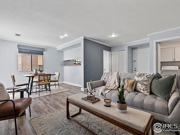 Enjoy one of the lowest HOA fees in the area in this beautifully updated top-floor corner condo! Brimming with style & charm, this 1-bedroom, 1-bath gem boasts a rare & highly sought-after reserved carport space plus 1 reserved parking spot. Step inside to discover a spacious bedroom retreat featuring an en suite bath & a generous walk-in closet. The kitchen is a true delight with upgraded cabinetry, a roomy pantry, gleaming granite countertops, & sleek stainless steel appliances - perfect for both everyday living & entertaining. Throughout the home, luxury vinyl plank flooring & elegant crown molding create a warm & refined ambiance. You'll love the dedicated laundry room, thoughtfully designed with abundant cabinetry, counter space, & a washer/dryer are included. Cozy up by the inviting wood-burning fireplace, or step out onto your private balcony to take in peaceful views of the meticulously maintained grounds. Nestled conveniently between the community pool & tennis court, this home also falls within the highly acclaimed Cherry Creek School District. Just a short stroll to King Soopers, restaurants, a bustling shopping center, & the light rail station, this location offers unmatched accessibility. Enjoy quick drives to Cherry Creek State Park (approximately 5 minutes), the Denver Tech Center (around 8 minutes), & easy access to both Downtown Denver and DIA.