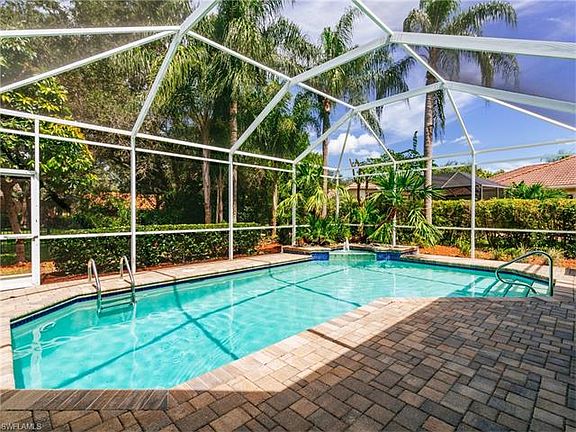 Don't miss this Gem in Mahogany Run! Gated community located at Gateway Greens & just minutes to everything you love in Southwest Florida! This pool home, tucked away on a quiet cul-de-sac, offers outstanding features throughout. Enjoy beautiful finishes including new granite counters, modern range, wine cooler, crown molding, plantation shutters, recessed lighting, gas fireplace & gorgeous wood floors throughout. Expansive floor plan offers formal dining & living rooms, family room, breakfast nook & den perfect for a reading room or home office. Plenty of space for family & friends with 4 bedrooms & 3 full baths separated for privacy. Master suite is complete with direct lanai access & bath with separate tub & shower. But why spend your time indoors when you can enjoy the extra-large pavered screened pool deck and covered lanai; the sparkling pool & oversized hot tub offer the ultimate in relaxation. Updated features include new AC and ductwork 2015, pool pump & heater 2013, and wood flooring & travertine tile 2012.