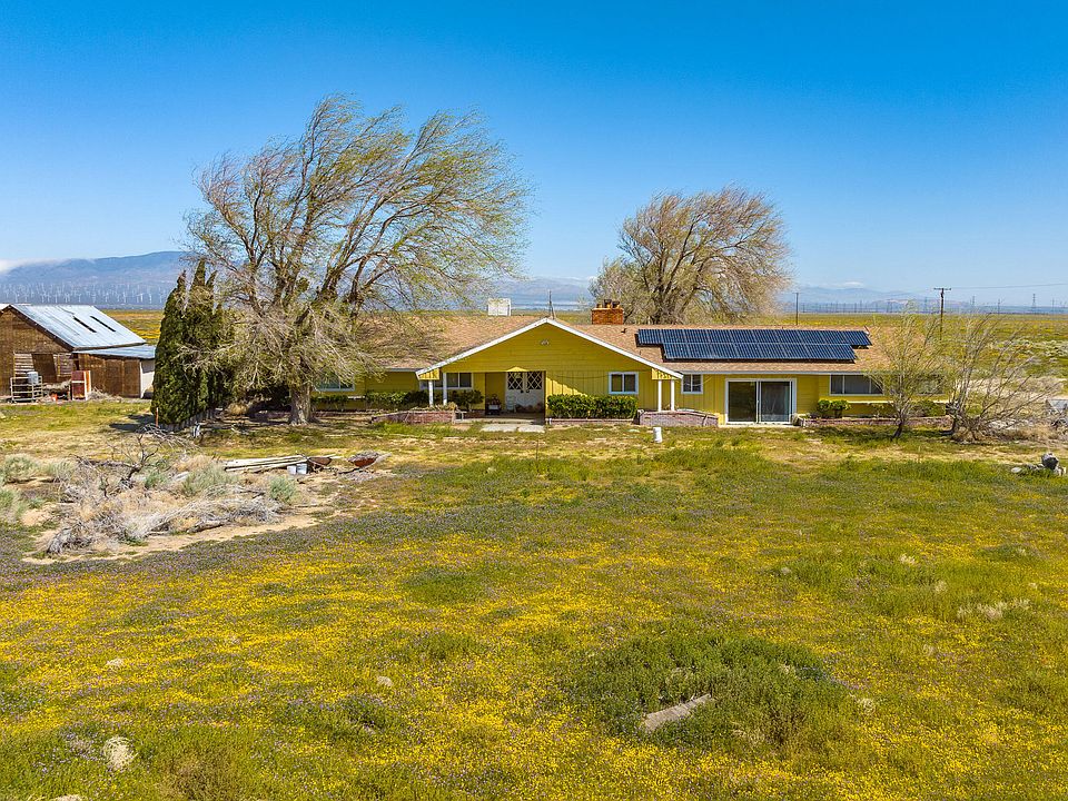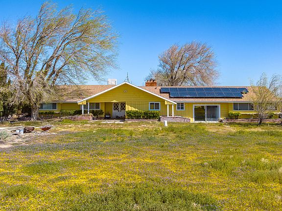 Live among the wildflowers and enjoy the solitude of this spacious ranch home. Two fireplaces give functional heat to the family room, formal dining room, kitchen and the formal living room. Both have a magnificent brick backdrop. The kitchen has Corian counters, stainless steel appliances, double oven and lots of storage space. A breezeway with an abundance of storage connects an addition with two additional rooms. A large barn is located to the west of the home. Enjoy mature trees, junipers and cacti. The serene backyard is enclosed by mature juniper trees. Enjoy outside life with a basketball hoop and exterior lighting. The solar is leased. Needs flooring and a few repairs but priced accordingly.