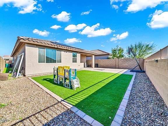 Step into a well-loved home where comfort, ease, and modern living greet you. Ideal for growing your family or for finding a low-maintenance lifestyle near Luke Air Force Base, this 2022 single-story home offers the simplicity and space today's buyers desire. Natural light fills the open great room, connecting to the heart of the home and its modern kitchen. Four well-designed bedrooms provide flexibility for family, guests, and a dedicated entertainment room! The backyard overlooks an open and grassy greenbelt for additional privacy and peace. Built for energy efficiency + savings, the 12.4 kW solar system recently produced over 20 MWH of annual energy. With a low, fixed monthly payment it's sure to save you signficant money. Come by and see, your new home awaits!