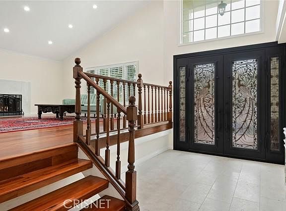 Immaculate split-level Granada Hills Pool Home is ready for move-in. This home is located within the school district of El Oro Way Charter for Enriched Studies. Features include New Custom Iron & Glass Double Entry Doors Grand Foyer with Tile Flooring Exotic Brazilian Koa Wood Flooring Including the Staircase Kitchen with Serve Through French Window both with Granite Counters, Stainless Kitchen Appliances, Kohler Sink, Breakfast Bar & Dining Area Vaulted Ceiling Enhance the Large Living Room with Fireplace Spacious Family Room with Marble Fireplace Separate Elegant Formal Dine - Light and Open Floor-Plan French Doors Master Suite with 2 Separate Closets (one is a walk-in), Vanity Area Remodeled Private Master Bath with Dual Sinks - Downstairs Bedroom with Adjacent Bathroom Upstairs Hall Bath with Dual Sinks Both Hall Bathroom Showers Have been Remodeled with Floor to Ceiling Marble, Newer Ariel Vanities with Carrera Marble Counters - Recessed Lighting Throughout the Home French Doors California Plantation Shutters by Danmar Solar Panels & New Insulation Offer Energy Efficiently Newer Electrical Panel Two Upstairs Bedroom with Sliding Glass Doors to Huge Front Deck In-door Laundry Room with Built-in Cabinets and Work Area Crown Molding New Interior & Exterior Paint - Copper Plumbing - Entertainers Dream Yard - Lush Landscaping - 3 Car Direct Access Garage with Built-in Storage Cabinets - Recently Remodeled Pool with New Pipes Upgraded Pool Equipment Custom Exterior Pillar Lights Iron Gates Newly Constructed Extensive Custom Brick Work in the Front and Rear of Home Which Includes Home Fascia, Front Stairs, Entry Porch, Planters and Rear-yard Patio. All of the Brick Work was Installed Approx. 5 Years Ago Sparkling Pool This is a Must See Home!