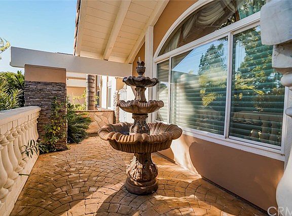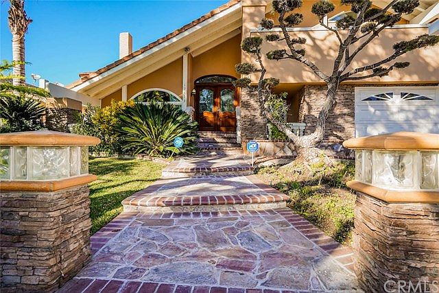 This is a must see. Prestigious Cerritos neighborhood features this highly desired Greenbrook Granada model home. Beautiful and professional landscaping beckons your double door entry into this fabulously adorned home. Marble trimmed, stone tile entry is accented by custom wrought iron railing opens to a spacious formal living room. Arched doorways, crown molding and recessed lighting is featured throughout this immaculate 5 bedroom 3 bath home. One bedroom is on ground floor. Each bathroom is individually styled in marble, tile, fixtures and trim. Spacious master bedroom ceiling is vaulted and opens up to a scenic balcony. Master bath features a jacuzzi tub and custom tile. This is priced to sell and will sell quickly.Wonderfully quiet neighborhood is close to all the best education Cerritos offers as well as Cerritos Library.