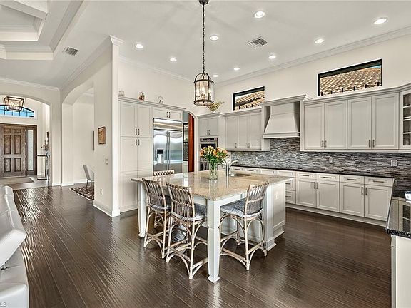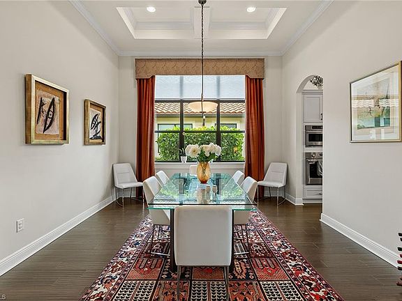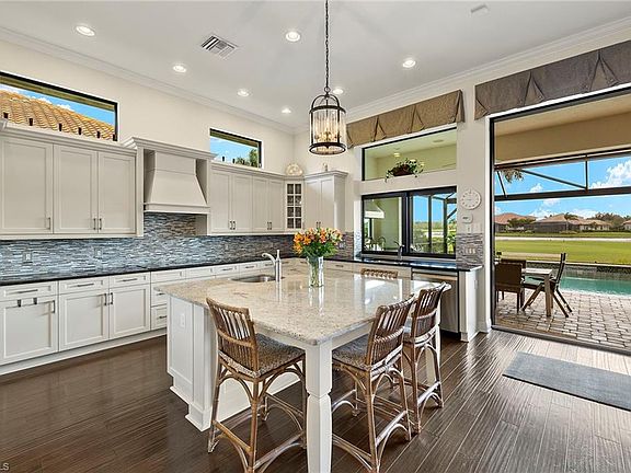 This residence includes a full golf membership, allowing immediate access to the greens upon closing. In TwinEagles, this 3,020-square-foot home offers refined living with four bedrooms, a den and four baths. The open floor plan showcases thoughtful design and meticulous craftsmanship throughout. A gourmet kitchen serves as the centerpiece, featuring custom white cabinetry, stainless-steel appliances, granite countertops and a designer backsplash. The kitchen seamlessly connects to the living and dining areas, creating an inviting space for intimate gatherings or larger-scale entertaining. The primary suite provides a private retreat with dual vanities, a soaking tub and a separate shower. Outdoors, the residence presents an exceptional setting for enjoying the Southwest Florida lifestyle. The covered lanai includes a fully equipped outdoor kitchen overlooking a heated pool, spa and water feature. The picture-screen enclosure frames serene views of the lake and golf course. TwinEagles encompasses 1,115 acres of natural beauty and tranquility. Residents enjoy access to two championship courses: the Talon Course, designed by the Nicklaus Group, and the Eagle Course, designed by Steve Smyers. The recently renovated clubhouse features dining and social spaces, along with bocce courts, a Himalayan putting green, fitness center, tennis and pickleball courts, a resort-style pool and a tiki bar.