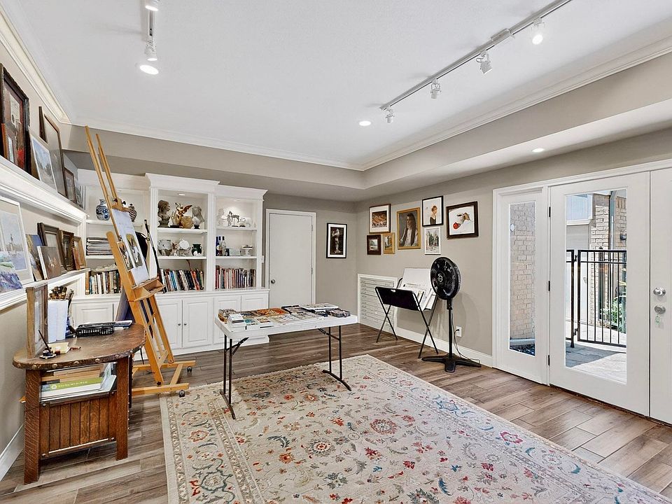 This FULLY RENOVATED Preston Square townhome in a highly sought-after location has been totally transformed into a contemporary masterpiece! Step inside to an open-concept main floor where walls have been removed to create a seamless flow between living & dining spaces, anchored by a stunningly reimagined multi-sided fireplace. High ceilings & joint sliding glass doors opening to a private back patio allow natural light to pour in from every angle—accentuating the fully repainted interior with tasteful wallpaper finishes & modern lighting, PLUS updated flooring removing all carpet throughout. An all-new chef’s kitchen is now equipped with a central island, large farm sink, designer tile backsplash, ample counter space, soft-close cabinets with TONS of storage and premium SS appliances including double convection ovens, gas rage & vented hood. Dining area framed by custom built-in display cabinet. The primary suite upstairs is a retreat—custom nickel board vaulted ceilings, dual walk-in closets & remodeled ensuite featuring dual sinks & a glass shower. Secondary bedroom boasts another renovated ensuite featuring artisanal tilework & ample closet space hidden by sliding barn doors. New plantation shudders in both bedrooms. Laundry room conveniently located between both suites. Downstairs flex space has been recreated with custom features including built-in art or stationary storage, bookshelves, new track lighting & display shelving—perfect for creatives and collectors—plus custom French doors added opening to the front patio. Keep as studio office space or use as a 3rd bedroom. With a converted full bath down the hall & separate private entrance, it could be the perfect in-law suite! Flex room connects to the 2-car garage complete with utility sink & additional storage room. Nestled in the vibrant Preston Square community offering a pool, clubhouse, greenbelt & tennis courts in a convenient North Dallas location near schools, parks, shopping & dining!