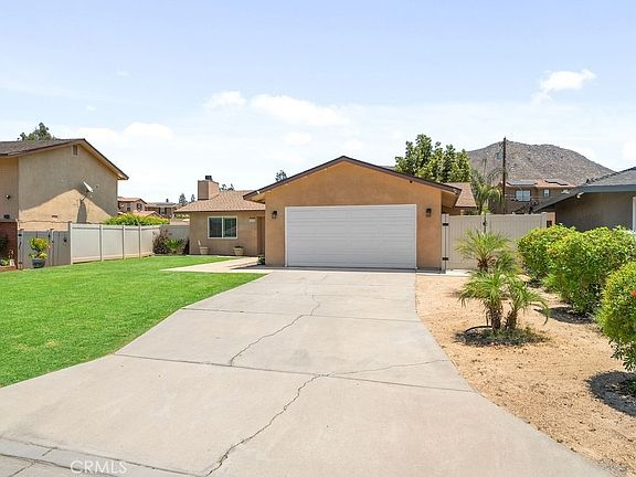 Single-Story Home with Spacious Backyard in Grand Terrace.Located in a quiet neighborhood of Grand Terrace, this well-kept 3-bedroom, 2-bathroom home offers easy living with a functional, single-story layout. Inside, you'll find high ceilings, tile and wood flooring throughout, and plantation shutters that provide both style and privacy. The primary bedroom includes its own en-suite bathroom, offering comfort and convenience. The remaining bedrooms are well-sized and share a full bathroom. Step outside to a large backyard featuring a full-length Alumawood patio cover—great for outdoor dining, relaxing, or entertaining. A 2-car attached garage adds to the practicality of this home. If you're looking for space, comfort, and a great location, this home is a must-see.
