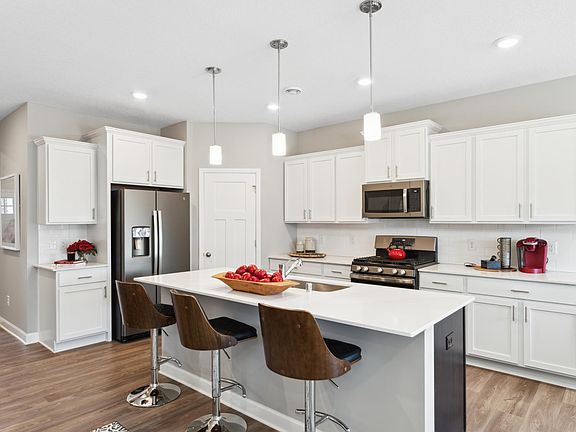 Welcome to this delightful one-level twinhome, the Aspen! This former Model Home end unit is available for a quick closing! The Aspen offers easy, low-maintenance living in up-and-coming City of Rogers! With 2 spacious bedrooms and 2 well-appointed bathrooms, this home is perfect for those seeking comfort and convenience. The open concept living area boasts natural light and seamless flow, creating a welcoming atmosphere for both relaxation and entertaining. Featuring all living on one level – this home is sure to impress. The primary bedroom comes with an en-suite bathroom for added privacy and convenience with a secondary bedroom and bathroom located nearby. The kitchen features modern appliances, ample storage with a spacious walk-in pantry and a large kitchen island. Quartz countertops, ceramic backsplash and shaker style cabinetry are sure to impress! Additional perks include an attached 2 car garage, laundry room, and energy-efficient features throughout. This Aspen offers the ideal balance of space, comfort, and practicality—all in a peaceful community setting. Don’t wait too long for the last chance to purchase a one-level twinhome in the exclusive Skye Meadows!