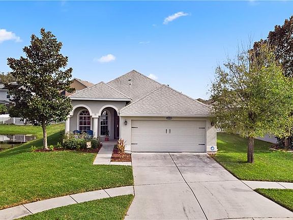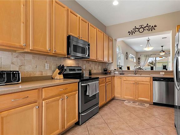 Beautiful home at the end of a cul-de-sac in great condition. All floors are ceramic tile except 2 bedrooms for ease of cleaning. Updated kitchen with white cabinets. Triple sliding doors to lanai make a great opening to the outdoors and beautiful inground pool with waterfall feature. Master bath features a large walk-in shower and dual sinks. The park/playground is a short walk.