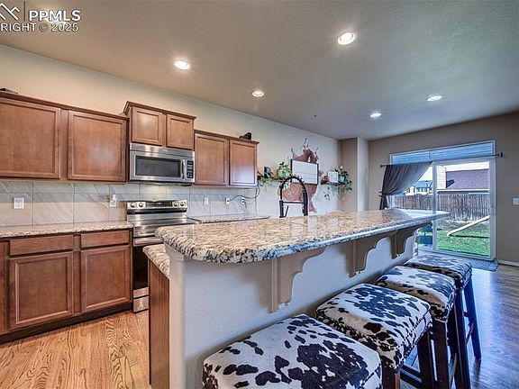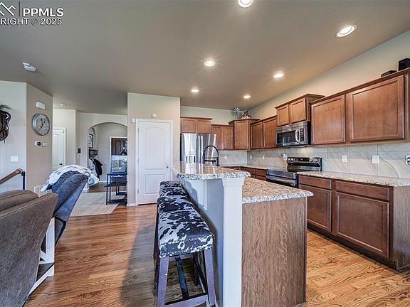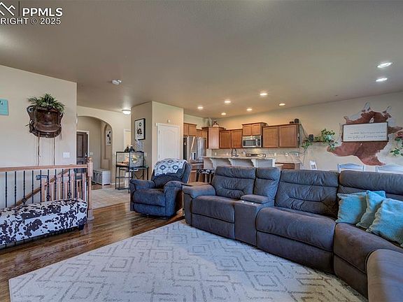 Welcome to this well-cared-for 4-bedroom, 3-bath ranch home in the highly sought-after Meridian Ranch neighborhood. Step inside to find hardwood floors and a bright, open main level with a spacious great room. The kitchen features granite countertops, a breakfast bar, and plenty of space to cook and gather. The main level primary suite includes a 5-piece bath and walk-in closet, plus there’s an additional bedroom on the main floor for guests or flexible use. Downstairs, the finished basement offers a large family room with a cozy gas fireplace, two more bedrooms, and a dedicated office—perfect for working from home. This home sits on a nicely maintained lot with plenty of natural light throughout. Just minutes from parks, schools, walking trails, shopping, and the golf course, this home combines comfort, convenience, and community.