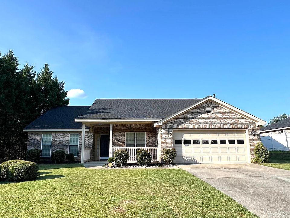 Plenty of room in this Grovetown home and only minutes to Fort Eisenhower. Covered front porch. Tiled foyer and an open floor plan. Formal sitting room with french doors can also be a private office. Dining Room open to the Great Room, Kitchen and Breakfast area. Gas Fireplace. Split bedroom plans with owner's suite on the right and two bedrooms and bath on the left. Tiled sun room could also be used as office or playroom. Fenced back yard with large patio. Two car garage. Neighborhood is close to Euchee Creek walking trail and playground.