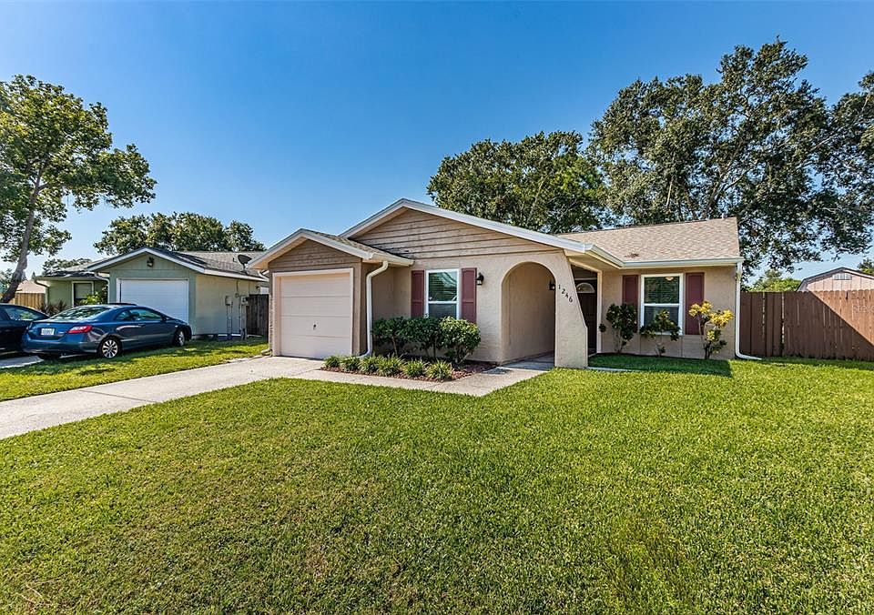 Very Nice Lakefront 3 bedroom, 2 bath home in The Hamlets of Forest Lakes subdivision. NEW ROOF 2022. NEW HVAC 2022. Great open and split floorplan with vaulted ceiling. Ceramic Tile throughout with laminate in the bedrooms. Large Master Bedroom with a walk-in closet and Master Bath. The living room has a wood-burning fireplace, and the kitchen has a nice open bar area. Screened in Lanai with a private backyard that faces a small lake. Plenty of room for relaxing, entertaining, fishing, or playing. The community includes a pool, basketball court, tennis courts, racquetball court, playground, and picnic area. The garage was closed in for interior storage. Can easily be converted back. Great central location close to the beaches, great schools, restaurants, and Tampa International Airport.