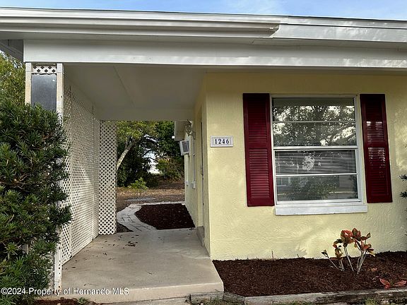 CUTE LITTLE DOLL HOUSE! Affordable Starter Home! Two bedrooms, 1 bath block home with cute covered front porch. This home is located just off Spring Hill Dr, close to shopping, restaurants, and convenient access to all amenities in Spring Hill. Located East of 19 in a No Flood Zone and No HOA. The home was just freshly painted inside and out and new flooring was put in most of house except for the tile in the kitchen and bath. Brand New Range and Refrigerator! The roof was replaced in 2019, electric panel replaced in 2023. Window ac units keep the house cool in the summer. County water, sewer and trash pickup. Buyer should verify school zones.