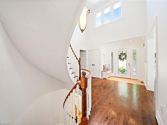 Immaculate Family Home Backing onto Trails in Prestigious Glen Abbey Welcome to this beautifully maintained 4+1 bedroom, 3.5 bathroom family home nestled on a quiet crescent in the heart of prestigious Glen Abbey. Surrounded by mature trees and backing onto scenic trails, this residence offers the perfect blend of comfort, functionality, and elegance. Step inside to find a spacious layout with hardwood flooring, pot lights, and thoughtful upgrades throughout. The bright living room features a cozy gas fireplace and flows seamlessly into the separate dining room—perfect for entertaining. A main floor office offers the ideal work-from-home setup or a quiet space for a den. The updated kitchen is a standout with stone tile flooring, stainless steel appliances, ceasarstone counters, wine fridge, ample pantry space, a breakfast bar and built-in eating area. Enjoy casual dining or host summer gatherings with ease thanks to the walk-out to the large deck. A generous family room with a second gas fireplace adds warmth and versatility. The main level also includes a practical mudroom/laundry room with garage and side yard access. Upstairs, you’ll find four generously sized bedrooms including a serene primary suite with walk-in closet and ensuite featuring double vanities, glass shower, and soaker tub. A stylish 5-piece bathroom serves the additional three bedrooms. The beautifully fully finished lower level expands your living space with a large rec room, home gym, 5th bedroom, full updated bathroom, and abundant storage. Outdoors, your private backyard oasis awaits—complete with a screened-in sunroom with built-in speakers, lush gardens, a deck with privacy fencing, and a patio ideal for barbecuing. Located just minutes from the iconic Glen Abbey Golf Course, highly rated schools, parks, tennis courts, the Glen Abbey Trail System, and the beloved Monastery Bakery. With easy highway access, this is truly a move-in ready, impressive home in a premium location.