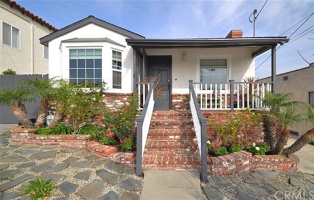 Absolutely pristine, charming, decorator-perfect home in Vista Del Oro, offers 3-Bedrooms, Family Room, 2-Baths remodeled with travertine/tumbled marble. Sparkling hardwood floors throughout with high-end neutral berber carpet in the three spacious bedrooms. A galley-style kitchen with light maple cabinetry & white tile countertops opens to family room with sliding doors accessing a side lanai area... perfect for entertaining. Coved ceiling in formal living room with wood burning fireplace. Home recently painted in neutral soft designer tones. The master suite/retreat has walk-in closet, gorgeous master bath with over-sized travertine shower, dual sinks, custom frameless shower enclosure & French doors opening to a second private patio area, perfect for enjoying your morning coffee & the cool ocean breezes. Full-sized laundry room leads to attached 2-car garage with alley access & additional parking space. Front easy-care landscaping incorporates natural flagstone & interlocking pavers & off-street parking. This home is picture-perfect, remodeled in 2001 with designer touches throughout done in 2013. Commercial air conditioning/heating, new whole house fan, security system plus spacious rooftop deck to enjoy the captivating harbor views.