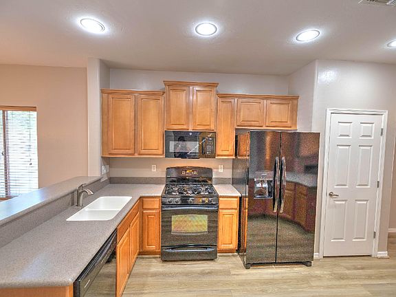 Move in ready 3/2 in the heart of Oro Valley welcomes you with a gated courtyard. As you enter, you'll find an open concept great room with fireplace for modern living. Spacious Chef's kitchen suited with large island separate dining area with plenty of cabinet & counter space. Master suite hosts a soaking tub, walk-in shower & closet. Fenced backyard with patio. Ceiling fans throughout. Washer and Dryer included. Enjoy the tranquil living of Rancho Vistoso in this well-maintained neighborhood.