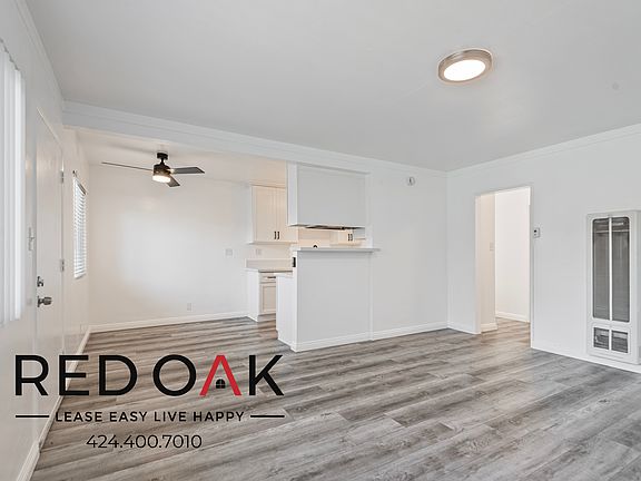 Recently Refreshed One Bedroom on the Top Floor with Lots of Natural Light, Stainless Steel Appliances, On-Site Laundry, and Included Parking ~ In Prime Downey! Key Features: Situated Perfectly: You'll love this stylish building with lovely gardens around the exterior. Spacious Open Concept: Boasting hardwood style vinyl floors, and natural light streaming in through large windows. Enhanced Privacy: Blinds on the windows let you control the light and offer additional privacy. Temperature Control: An efficient gas furnace and breezy ceiling fan ensure that your home is always comfortable. In-Unit Storage: Built-in cabinets in the hall offer plentiful storage. Eat-In Kitchen: Featuring numerous hardwood cabinets, stainless steel appliances, and sleek quartz countertops. Dining in Style: Boasting a lovely dining area right in your kitchen. Sunlit Bedroom: Bathed in natural light through large windows, and a large closet with built-in organization solutions. Luxurious Bathroom: Adorned with contemporary fixtures, large vanity and mirror, plus a luxurious soaking tub with shower option. Easy On-Site Laundry: Adding convenience to your everyday chores. Hassle-Free Parking: Enjoy the peace of mind provided by your included off-street parking space. Pet-Friendly Policy: This community warmly welcomes your pets. Downey Living at Its Finest: Enjoy easy access to nearby attractions, green spaces, recreational pursuits, shopping, and the welcoming community spirit that defines Downey as the ideal place to call home. Elevate your lifestyle in this haven! Available for an immediate move-in. LEASE TERMS: One Year Lease Pictures and descriptions are of a Model Unit Floor Plan and Details may vary Square Footage is approximate. Showings may not be 1-on-1. Listed pricing and special offers are only valid for new residents. Pricing and availability are subject to change at any time. Red Oak does not warrant or represent that image renderings on this website are an accurate representation of every floor plan available at the Property. Floor plans may vary unit by unit and by location at the Property. Please contact the Leasing Office to schedule a tour of the Property and the particular unit you are interested in. Pricing and availability are subject to change at any time.