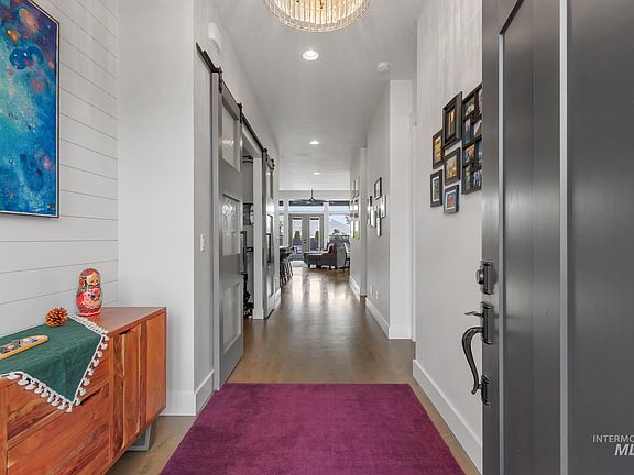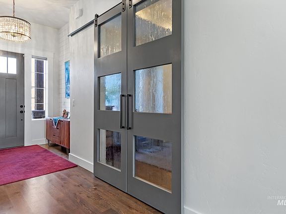 Welcome home to this elegant custom single-level property in Pristine Springs Estates surrounded by beautifully manicured landscaping, tranquil ponds with graceful fountains, walking paths, and community pool. The home features real site-finished hardwood floors (not engineered), abundant natural light, and an inviting great room w/gas fireplace. A chef-inspired kitchen offers quartz countertops, 6-burner Thermador, Bosch double ovens/ microwave, and walk-in pantry w/wine fridge. The spacious primary suite feels like a private spa retreat with dual vanities, soaking tub, 2-person shower and very generous walk-in closet. Outdoor living includes a covered patio, a natural stone water feature at entry and 150k BTU gas fire rock on the patio — perfect for evening relaxation and entertaining. Plenty of room for RV & toys in the 59’ RV bay w/ garage heater + 2-car garage and storage shed. Wired with RV circuit, for 2 or 4 post automotive lift, sauna, hot tub and oversized electrical panel. Don't miss your opportunity to live in this quiet, well manicured neighborhood, tucked away in the best part of beautiful Star Idaho! We have an Indoor Drone tour available which tours you through the home and around the neighborhood.