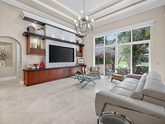 Exquisitely updated 1-story estate in gated Stonebrook Estates on approx 1/2 acre on quiet secluded cul-d-sac. 2024 Flat Tile Roof, Impact Windows, whole home Generator, Marble & Porcelain floors, coffered volume ceilings, crown molding & Designer Bathrooms. Gourmet kitchen w/ top of line appliances, Gas Range & built-in family room Wall Unit w/ natural stone. Custom office, Game Room & luxurious primary suite w/ dual walk-ins, jetted Tub, Spa Shower & Toto washlet. Resort-style backyard w/ infinity lagoon pool, spa, cocktail table, sculpture garden, tiki bar w/ Lynx grill & lush landscaping. 3-car garage, paver circular drive, brand new primary AC, gas water heaters, roller shades, LED high hat lighting & gas fireplace. Clubhouse, gym, media & party rm, tennis, pickleball, A Rated Schools