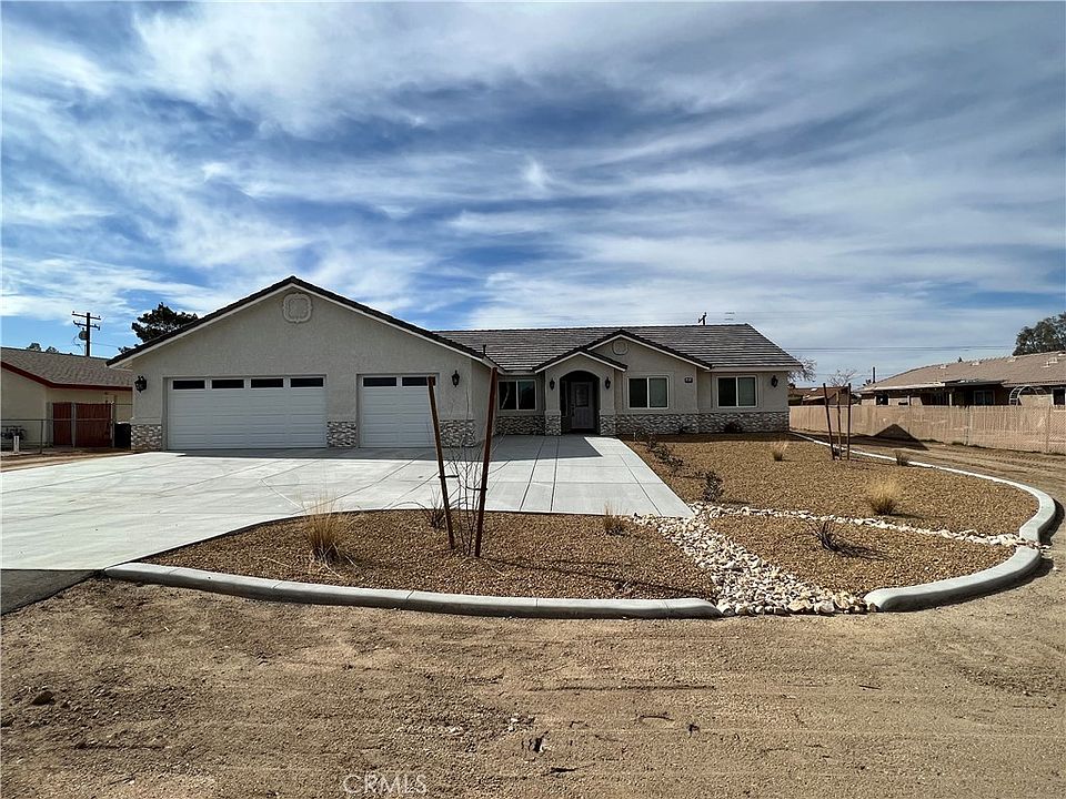 Beautiful New home in a desired location of Apple valley! This home features 4 bedrooms 2.5 bathrooms & 2,111 living sq.ft. split floorplan on half acre! The gorgeous Kitchen has plenty of cabinet space, stainless steel LG appliances, granite countertops throughout with a large island as it overlooks a living a room with a gorgeous, stacked stone fireplace. Master bedroom is very large with plenty of space with a large walk-in shower, his and hers sinks, a centered vanity and a large walk-in closet with custom shelves. Flowing throughout this gorgeous home is tile floors that offers a warm appearance. This home even offers an oversized three car garage, an indoor laundry room with lots of storage, and an Alumawood covered patio for those summer BBQ's. You will absolutely fall in Love with this home! *.