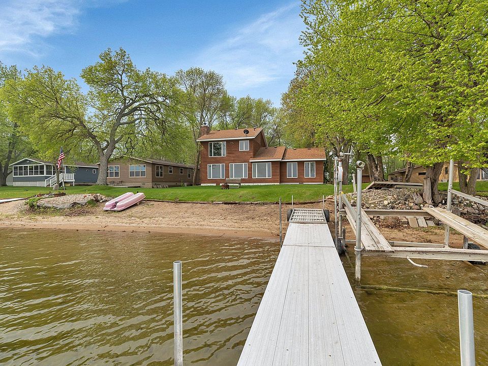 3 bedroom/2 bath home on beautiful Lake Florida! 100 feet of prime level lakeshore on a double lot, which is a rare find! Large sandy beach for the entire 100 feet. Home is almost 2,000 square feet & features 2 main level family rooms, lakeside dining room, main level bedroom, and a wood burning fireplace to cozy up to in the winter. Many large windows on the lakeside elevation of the home. The inside and outside of the house was just recently painted with knockdown ceilings. Upstairs features a balcony off the hallway and 2 more large bedrooms. 2-stall detached garage and storage shed with power for your lake toys. There is power located right by the dock as well. Home has city sewer and private well. Home has gutters with gutter guards. Home has forced air w/central air. There is a dock & boat lift which are included in the sale. Home sits on an amazing level lot with easy access to the lake. Fire pit near the beach area. THIS A MUST SEE!!!