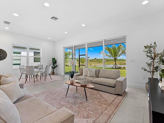 Welcome to Valencia Trails, North Naples’ premier 55+ lifestyle community—where luxury meets low-maintenance living. This is one of the most desirable lots in the entire neighborhood, and it’s easy to see why: nestled on a private lake with a preserve just beyond, this homesite offers an incredibly rare combination of scenic water views and total privacy. With no homes behind you, there's room for a pool, and it’s just a stone’s throw from the community’s convenient back gate—offering quick access to the brand-new Vanderbilt Beach Road extension. The home itself is the highly coveted "Pelican" floor plan, filled with over $50,000 in thoughtful builder upgrades and designed to live effortlessly with upgraded cabinetry, lighting, and countertops. It offers 3 spacious bedrooms, a versatile den, 3 full bathrooms, and an extended 2-car garage—ideal for storage, hobbies, or a golf cart. Nearly 2,000 square feet of open-concept living space flow beautifully from room to room, perfect for entertaining or enjoying quiet evenings at home. The upgraded kitchen features lower cabinets converted to drawers for easy access, sleek quartz countertops, and a full quartz backsplash that ties everything together. Impact windows and doors a tankless water heater take this build to the next level. Out back, your covered and screened patio overlooks a lush, private backdrop that simply doesn’t exist anywhere else in the community. Whether you're sipping morning coffee, reading a book, or planning your future pool, this outdoor space will become your "zen retreat" with sun nearly all day from the southern exposure. And there’s even more to love about the lifestyle here. Valencia Trails offers a 43,000 sq. ft. clubhouse packed with resort-style amenities: a beach-entry pool, lap pools, tennis, pickleball, bocce, a fitness center, a pro-shop, full-service spa, on-site dining, and miles of scenic trails. There are spaces for creativity, connection, and play—including a cooking studio, card rooms, hobby spaces, and two dog parks for your four-legged family members. Whether you're drawn to the sense of community, the vibrant amenities, or simply the tranquility of this one-of-a-kind homesite, this is Southwest Florida living at its best.