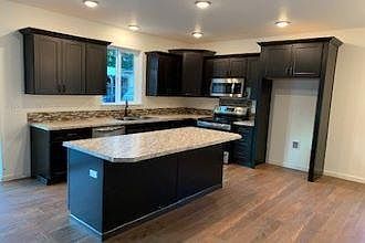 Open floor planTile bathroomsWhite trim packageLaminate flooringLarge kitchen islandBeautiful cherry cabinetsStainless steel appliances