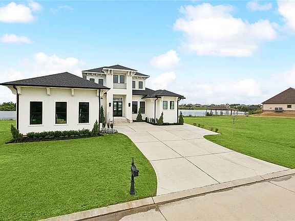 Enjoy waterfront living at its finest in this exquisite custom built beauty that’s just 2 years young and an entertainers paradise. With elegance & style like no other, this home will have you in aw the moment you walk through the door! Offering an open concept living, dining and kitchen that’s bright and airy with a wall of windows & a view you can only dream of plus an office/bonus space just off the living with custom farm door enclosure. This home leaves little to be desired with the most amazing light fixtures, beautiful coffered ceilings outlined with remote controlled custom lighting with interchangeable colors. LSU parties… purple lights it is! And for the cozier nights gather around your electric fireplace that heats up to 400sq ft radius. In the kitchen you’ll find a large center island with top of the line chefs appliances and a pot filler. The entire home is smart/bluetooth operated for convenience. The functional split floor plan allows privacy for the primary en suite located on the opposite side of the home from the guest bedrooms. Primary bath has dual vanities, separate tub and a shower with 7 shower heads and huge custom built closet and additional vanity area. A few more favorites... the large butlers pantry, oversized laundry room with separate sink, mud room with storage just off of the garage and a walkable attic. If all this isn’t enough, LOW FLOOD INS with an assumable flood policy in place. Your rear patio offers the most breathtaking sunset views overlooking the water and no backyard neighbors. The gas lines are in place where you can design the perfect outdoor kitchen and there is plenty of room to add a glistening swimming pool. Call to see this show stopper today.