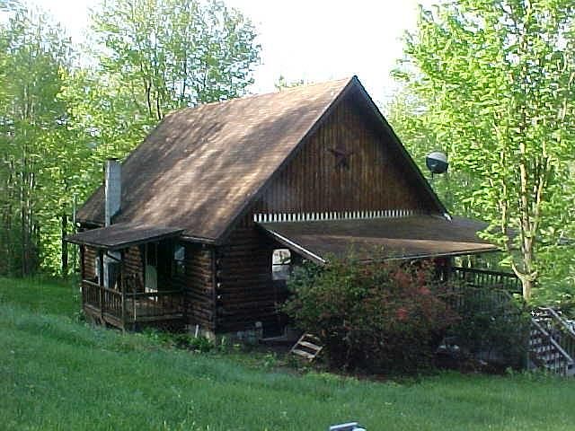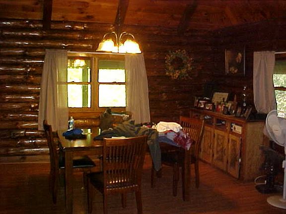 This log home nestled in the woods features open floor plan with cathedral ceiling that makes for bright spacious living. Beautiful new granite countertops in kitchen. First floor has aliving room, dining room, kitchen, one bdrm. and full bath, second floor has large master bedroom with private deck. Large covered deck on first floor. Walk out bsmt. has 32x12 rec or living room with carpet a nice cool place on those hot summer days. Double glass doors look out onto covered patio. Over sized 2 car garage with concrete floor, electric, & workshop plus nice size shed. Great hunting or just watch the wildlife from the deck.Paved road frontage but in the country. Room in bsmt. for additional bdrms if needed.
