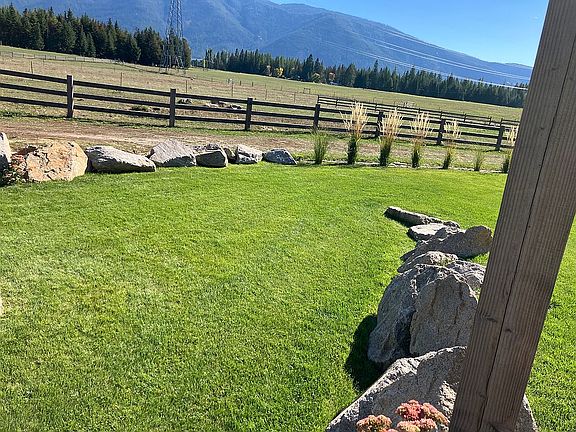 This lovely home has beautiful views of the Purcell Mountain and the Cabinet Mountain Ranges. The main floor has a nice kitchen with a window looking out towards the beautiful Purcell mountains-(known for beautiful sunset colors shining on it in the evening), a large dining room, living room, laundry room, main bathroom, master suite with a large jetted tub, and 2 other bedrooms. The basement has potential for a mother-in-law suite with outdoor entrance, 2 bedrooms, another bathroom, and large main room and also a large storage room with washer and dryer hook up. The 10 acres is divided into approximately 7 acres of pastureland, 2 acres forest, and 1 acre landscaped yard with a new sprinkler system. The patio/pergola and rock garden/fire pit are lovely for those summer parties! The garden is nice sized also, complete with raspberry patch, strawberry patch, grape arbor, and various fruit trees. It grows beautiful plants and vegetables and is fenced to keep the deer out. The pole barn is 60x60, and shelters horses, cows, hay, equipment, whatever you desire! The pasture also has a frost free drinking post for easy watering for your animals. If you have dogs that need a safe place once in awhile, there’s a nice size doghouse with a fenced run. Come check out this beautiful place!