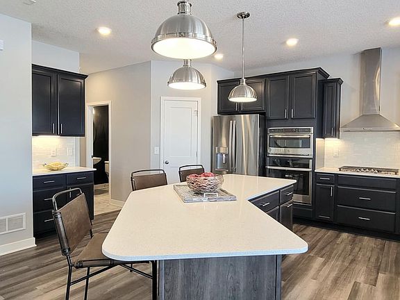 QUICK MOVE IN! If you are looking for a beautiful home located on a private homesite, gorgeous natural setting & completely move in ready - this home checks all of those boxes! You will fall in LOVE with the open concept & stunning morning room offering a ton of natural light on the main floor & lower levels. This home also includes a beautiful gourmet kitchen that offers you SS appliances, gas cooktop, double wall oven, direct venting and under cabinet lighting. The extra large kitchen island is perfect for entertaining and the large walk in pantry is conveniently located for everyday use. There is a wonderful floor to ceiling stone gas fireplace & dedicated office space on main level as well as a fully finished walkout lower level with 9 foot ceilings offering a ton of recreational space-RARE to find in new construction. Dual zone heating, W/D, furnace humidifier, irrigation, sod, and extensive landscaping (plus so much more) are included! Conveniently Located!