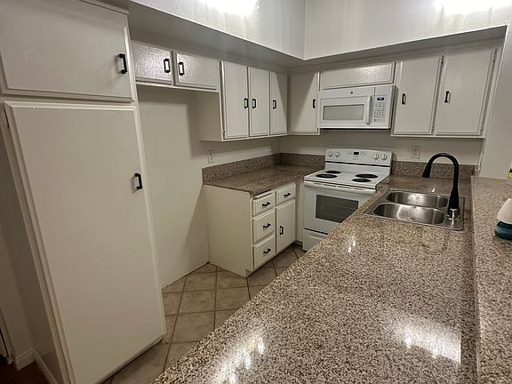 Kitchen: The kitchen features granite countertops, a double sink with a pullout faucet, a dishwasher, gas stove, and an over-the-range hood microwave.
