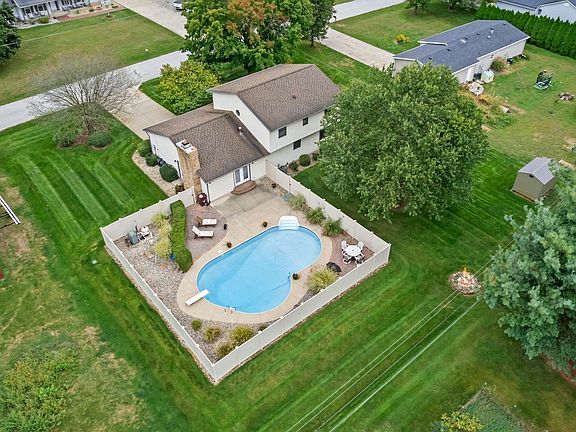 A half acre setting with privacy fence and in-ground pool! This beautiful home offers a spacious floor plan and partial finished basement. Greeting you with attractive curb appeal, maintenance-free brick front and open front porch. That leads you into the front foyer and living room. A large room that is open to the formal dining area which leads you to the adjacent kitchen space. Plenty of room for an island and breakfast bar addition. Down the hall is the half bath and laundry room plus the bonus family room with views of the back yard in-ground pool and patio areas. Upstairs, you'll find the bedrooms, baths, including the primary bedroom with full bath/stand up tile shower. Additional living space can be enjoyed at the basement. A generous size rec room plus a private den/office. Plenty of room for you to have guests!