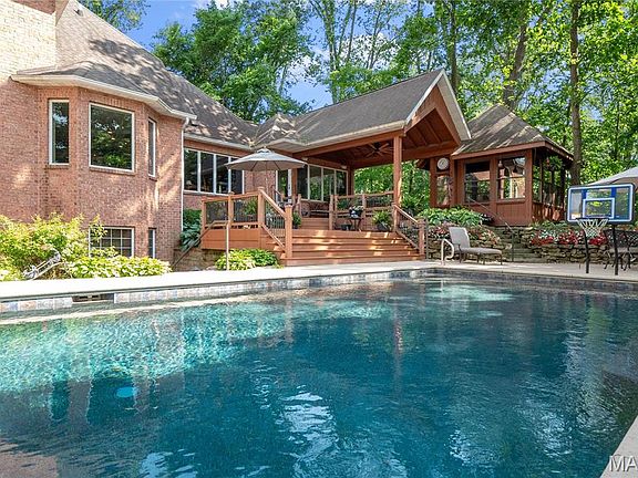 Custom-built, full-brick home on 4+ acres in Estates of Steeplechase. foyer flanked by private office & open staircase. Hardwood floors throughout main living areas. Living room is a focal point w/cathedral ceilings & floor-to-ceiling windows letting in natural light while offering views of the lush backyard. Luxurious main-level master suite boasts dual vanities, vessel tub, spacious shower w/bench & dual showerheads, & walk-in closet. Main level also features a family rm w/fireplace opening to gourmet kitchen equipped w/island, bar seating, pantry, solid surface counters, & custom cabinets. Dining area w/bay windows adjacent to kitchen. Off the 4-season room, access a multi-level deck, in-ground pool, patio w/fireplace, & enclosed gazebo. Upper level: 3 beds; 2 share Jack-n-Jill bath, 3rd is a jr. suite w/bath & walk-in closet. Lower-level walkout: wet bar, rec/family rm w/fireplace, full bath, workshop/office areas, & storage. Additional Rooms: Mud Room, Sun Room. IMPORTANT NOTE: Back on Market 6-28-25 due to Buyer not providing new proof of funds. Buyer did not complete any inspections.