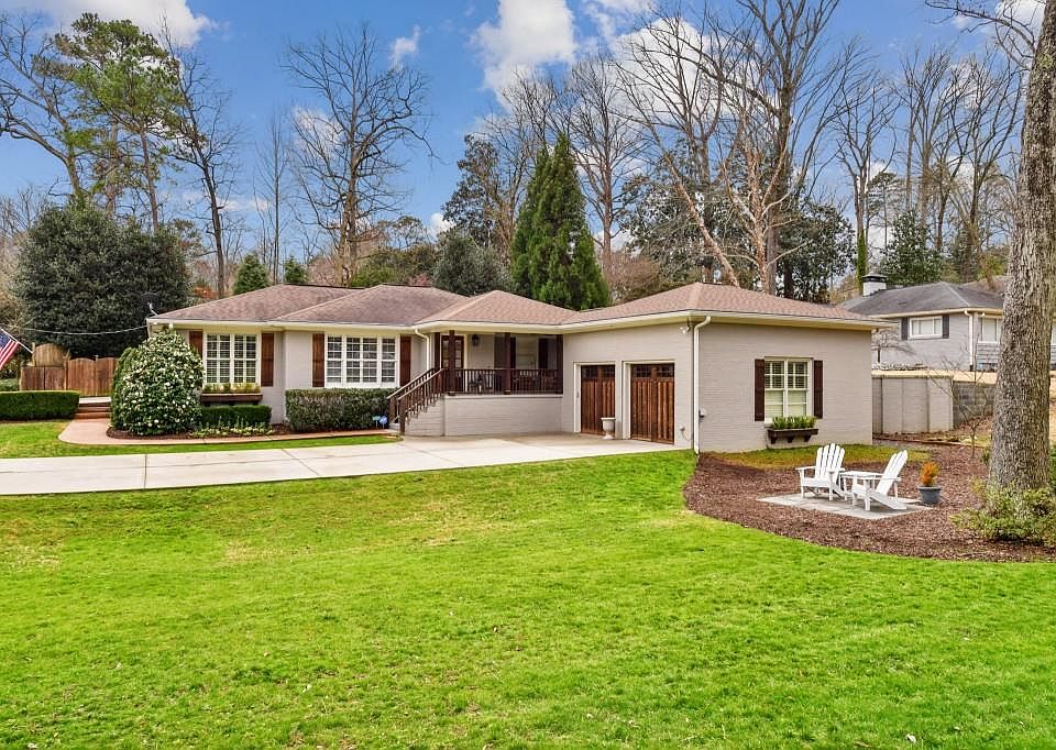 Nestled on a gorgeous deep lot with lush landscaping, this Brookhaven charmer is designed for entertaining with fabulous outdoor poolside living at its best. Move right in this pristine brick traditional with flexible floor plan and absolutely stunning heated swimming pool with total privacy in your own oasis. Inviting covered front porch with sitting area sets the stage for this handsome home with designer touches throughout. The open floor plan is designed for today's life style with great flow from the light filled Living room and Dining Room to the sleek new kitchen with custom island and serving bar for casual dining. Enjoy entertaining in the spacious Family Room/Sunroom with fireplace, banquette, windows galore and brick accent wall. Walk out to your private Key West style setting with expansive outdoor patio with stone walls and fabulous entertaining areas including an enclosed outdoor bar with private entrance, half bath, and outdoor shower. Additionally there is a separate building for storing toys, floats, etc. Get ready for fabulous al fresco dining with lots of room for grilling and multiple seating areas. Relax poolside in the 12' x 20' heated pool surrounded by professionally designed mature landscaping for the ultimate private retreat in the flat fenced yard. Designer kitchen features beautiful cabinetry, quartz counters, subway tile backsplash, farmhouse sink, stainless appliances including new gas range with grill and double ovens, plus wine refrigerator. There are 3 Bedrooms on the main floor. Primary Bedroom features a walk-in closet and private bath with large walk-in stone shower with seamless shower door and multiple rain head faucets including overhead rain shower. Two additional Bedrooms on the main with full tiled bath with large glass enclosed tub. The finished lower level with full tiled bath with shower and cozy built-in bed for guests boasts exceptional storage with built in cabinets. Large laundry room in terrace level. The new two car detached expanded garage connects to the main house on the covered porch and was designed to accommodate large SUV's. There's even more storage in the detached garage. Exceptional parking for multiple vehicles with a large driveway and secondary driveway parking pad. Rich hardwood floors throughout the main house with plantation shutters. Irrigation system. Just minutes from Buckhead and Morningside/Virginia Highland with low Dekalb taxes in Lavista Park, this pristine gem is a perfect 10!