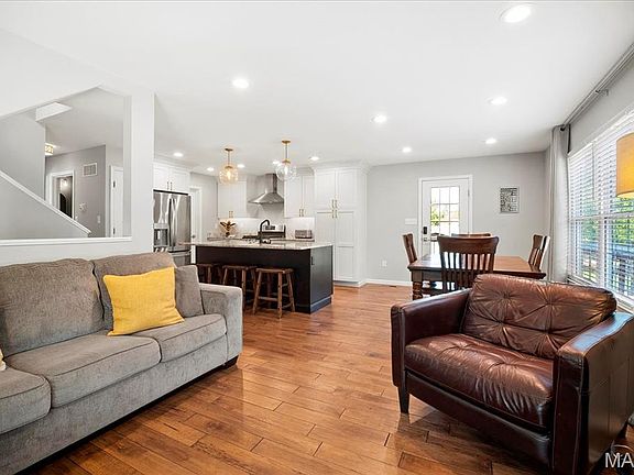 Open Sunday, 1:00-3:00. Complete renovation and addition were completed in 2021; this house is a Show Stopper! The main floor has hardwood floors, an open floor plan with main floor primary bedroom and bath, main floor laundry and walk in pantry, and a half bath. It's perfect for entertaining inside or out on the large composite deck. The second floor also has an ensuite bedroom with large walk in closet and beautiful bath. The home offers versatility to utilize the main floor bedroom suite or second floor suite as the primary or guest suite. The kitchen features a large island that easily accommodates 4 stools, stainless appliances, plenty of cabinetry and a large pantry. There is a dining space and living room with fireplace. The laundry and additional storage space is just off the kitchen. Three bedrooms up, one on the main and another downstairs off the family room. Zoned HVAC, oversized 2 car garage, beautiful landscaping, concrete driveway. Kirkwood School District.