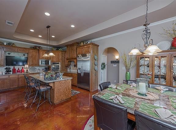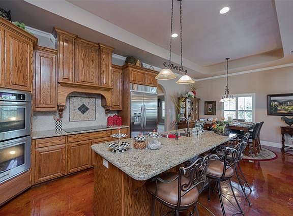 Miles from the commotion of the city, and perched upon a spacious piece of property, this contemporary ranch home exceptionally blends country living with contemporary style. Step inside to find an opulent kitchen with stunning stained concrete flooring, endless cabinet and counter space, and top tier built-in appliances. Step into the master suite to find a lavishly appointed master bath, complete with elegant vessel tub, separate shower with dual shower heads, changing room, and dual walk-in closets. Make your way into the back yard to find a spacious open patio with East-facing views to the rear of the property. A massive barn on concrete complete with electricity rounds out this perfect rural abode.
