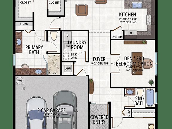 Both bathrooms offer floor-to-ceiling tile, upgraded granite slab vanities, and refined details for a spa-like retreat. The converted den provides a versatile third bedroom or office option, perfectly suited to modern lifestyles.